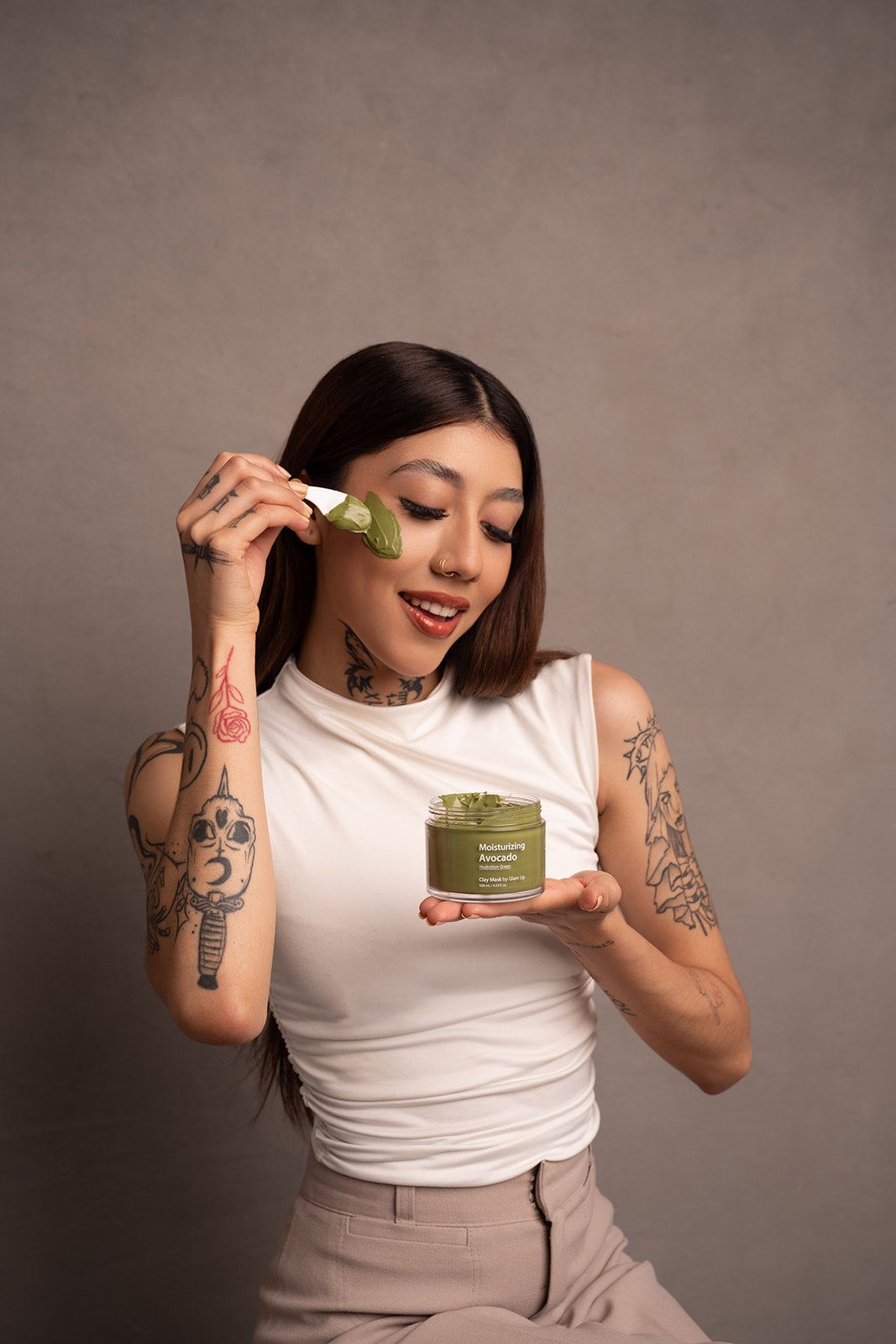 Experimenta el poder nutritivo de la Mascarilla Hidratante de Arcilla GLAM UP Avocado, una fórmula vegana y libre de crueldad diseñada para hidratar profundamente, minimizar los poros y revitalizar la piel. Enriquecida con extracto de aguacate, esta mascarilla transforma la sequedad en suavidad, dejando tu piel fresca, nutrida y radiante.
